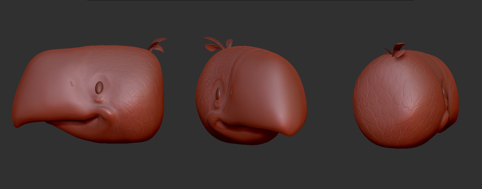 Our first assignment was just to create a head of a character, so I took the design of this bird from my sketchbook.